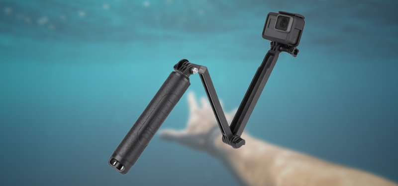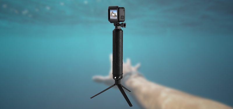 No modo bastão de selfie para GoPro, com braço dobrável, ele permite a captura de fotos sem o aparecimento do suporte na imagem, medindo 52cm quando totalmente estendido. O bastão de mão é flutuante, a prova d’água, e conta com pega de mão aprimorada para proporcionar mais estabilidade e segurança, e mede 20cm quando retraído. É importante ressaltar que para funcionar como flutuador o bastão não deve ser utilizado com a parte dobrável, pois o peso acaba impedindo que ele flutue. O modo tripé para Gopro permite a captura de fotos estáticas, e pode ser ajustado em diferentes alturas, de acordo com a sua necessidade.