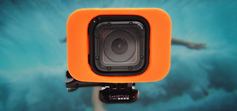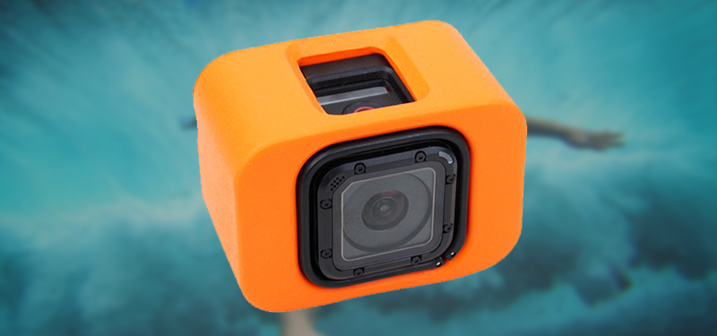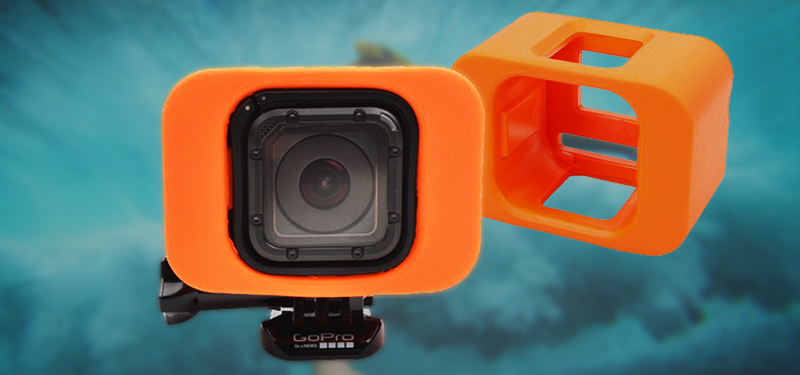 É fabricado na cor laranja com alta visibilidade, para facilitar a localização da sua Hero Session caso ela caia acidentalmente na água. Conta com preenchimento acolchoado que ajuda a proteger ainda mais a câmera, um suporte adesivo e uma alça para dar maior segurança à câmera em condições extremas.