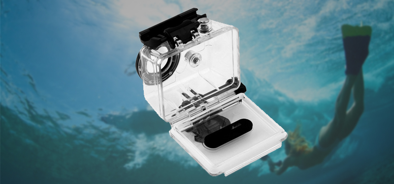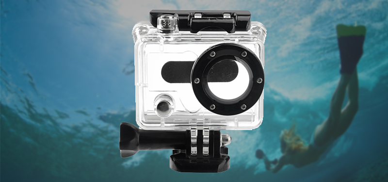 Caixa estanque ultra durável, á prova d’água, para mergulho com câmera GoPro até 30 m de profundidade. Suas lentes de vidro plano fornecem máxima nitidez de imagem fora e dentro da água.