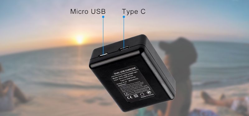 O carregador para Hero 9 Black pode ser alimentado usando um cabo USB-C ou Micro-USB, para que possa ser carregado facilmente ao se conectar a uma fonte de energia USB, como a de um carregador de tomada, power bank e outros. Possui luz de led inteligente, indicando carregamento quando na cor vermelha e completamente carregada na cor verde.