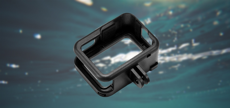 O frame possui estrutura com aberturas para as portas e botões da GoPro, permitindo facilmente recarregá-la ou substituir o cartão de memória. É um acessório resistente ao desgaste, com tampa traseira deslizante e conector de sapata fria na parte superior, que permite conectar microfones externos, iluminação e outros itens com este tipo de encaixe.